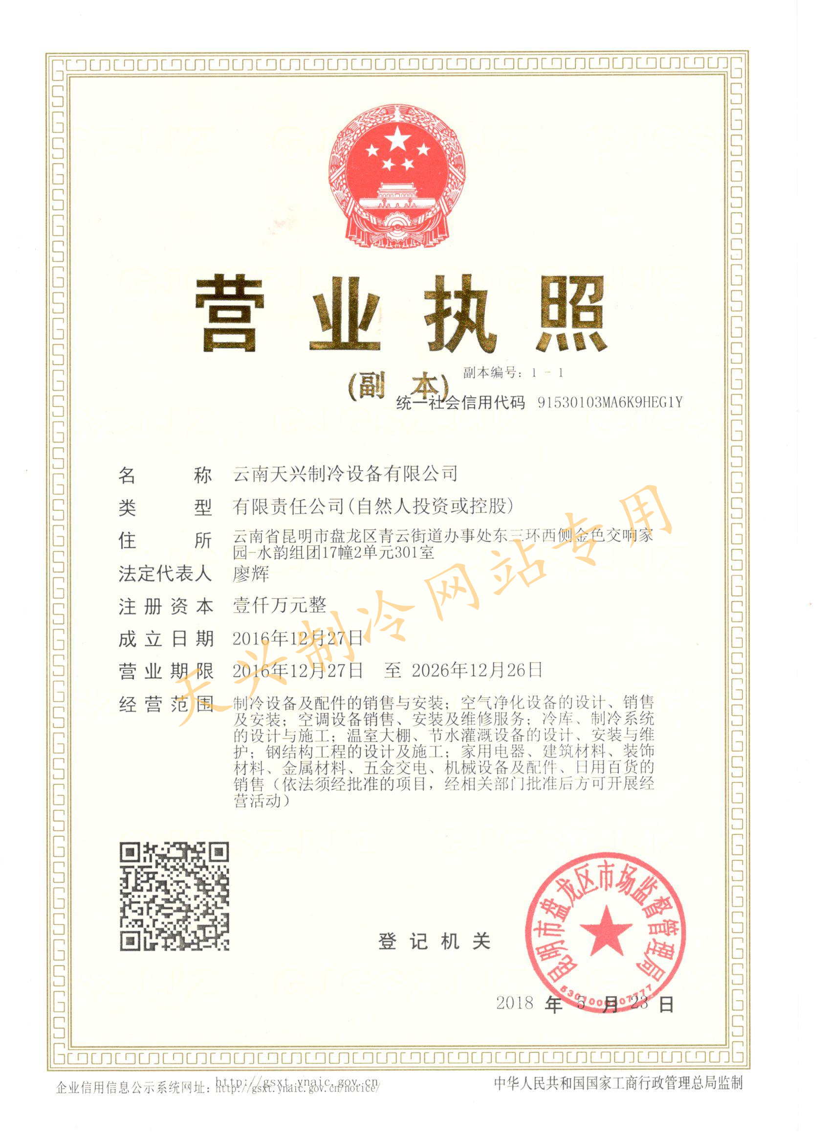 云南天興制冷設備有限公司位于云南省省會城市昆明,是一家專業從事冷庫設計、生產、安裝及技術服務為一體的綜合型企業。公司秉承“品質為本,信譽第一”的經營理念,承建了一大批速凍庫、冷藏庫、保鮮庫、鹽水池、超市展示柜、凈化無菌間等高品質工程。